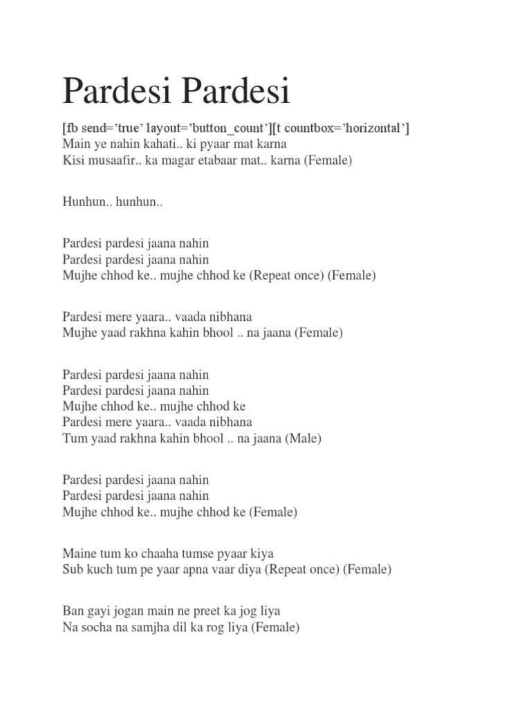 Pardesi Pardesi Lyrics In Hindi : Chalein hai baraati hindi song jigarwala t1u hipsong com.